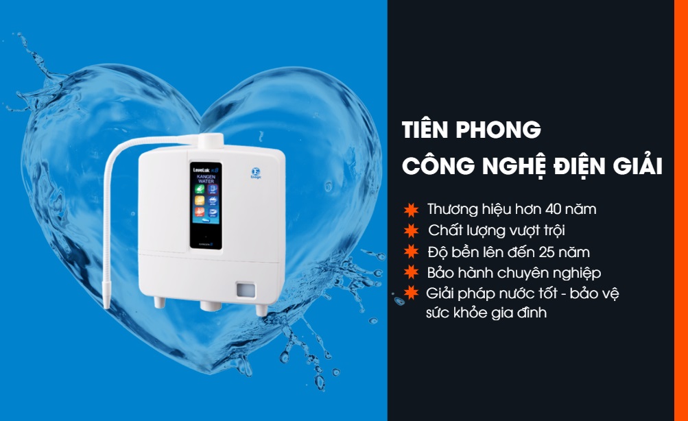 Máy lọc nước Kangen được nhập khẩu nguyên chiếc 100% từ Nhật Bản với công nghệ hiện đại từ tập đoàn Enagic. Nước Kangen chứa ion kiềm trung hòa axit giúp bảo vệ sức khỏe của gia đình bạn.